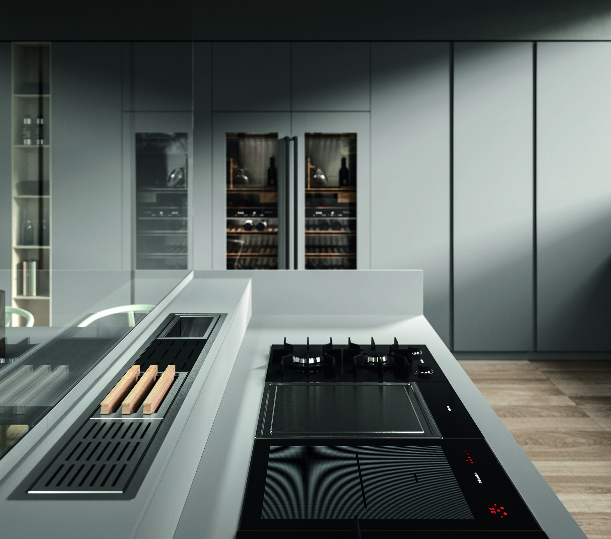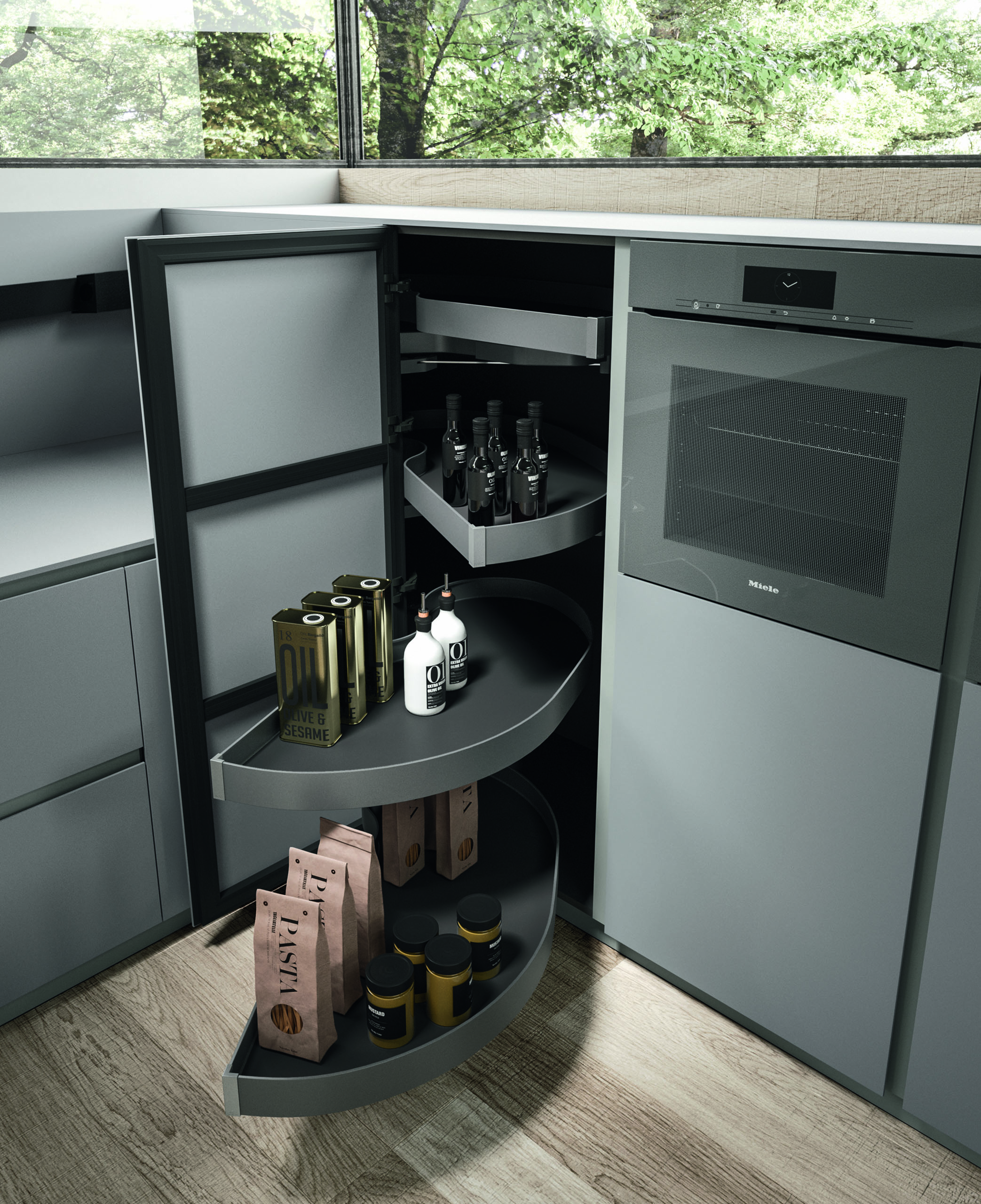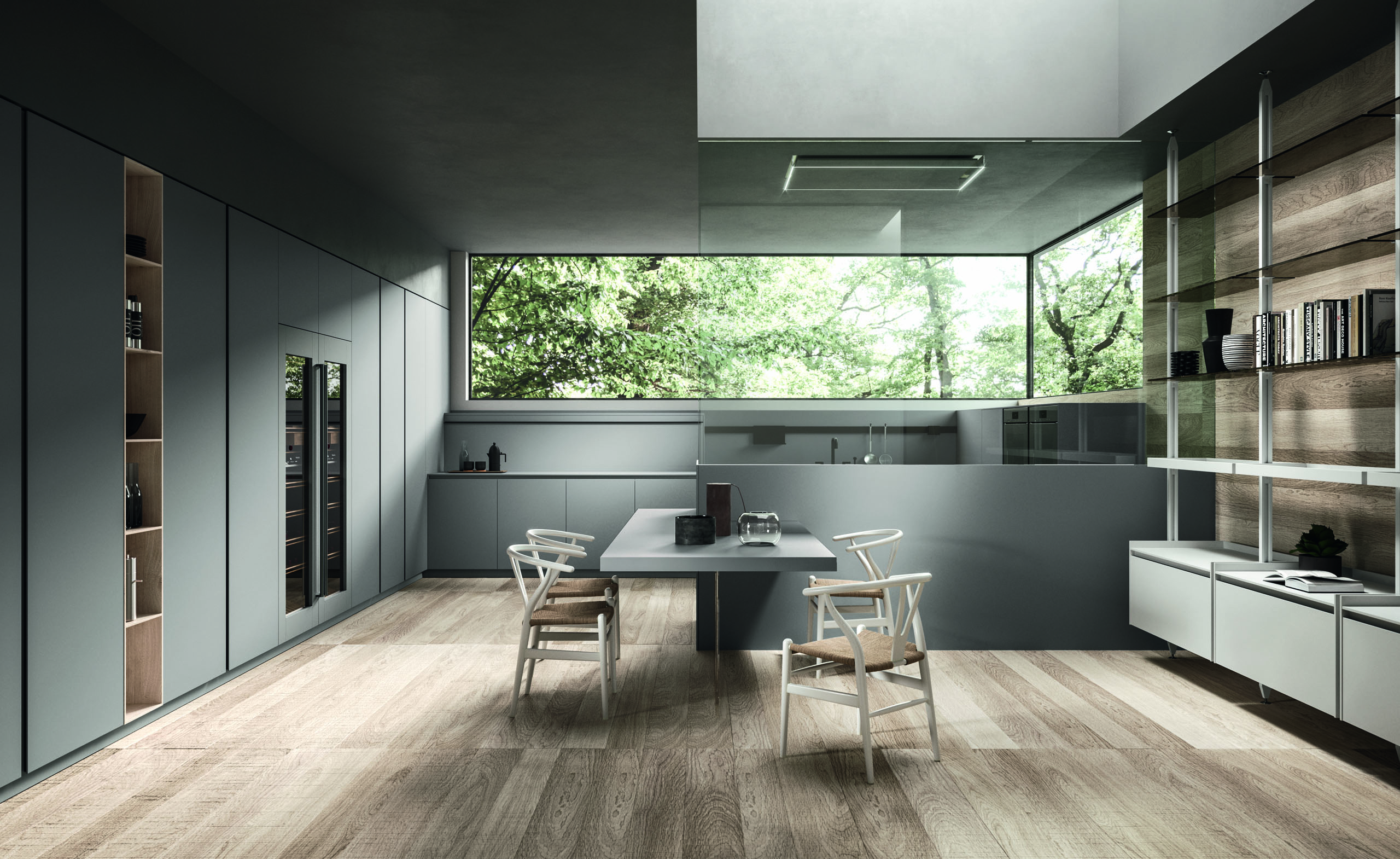 AK_04 es un proyecto contemporáneo que une flexibilidad de composición, tecnología y nuevos materiales. Sus puertas con marco de aluminio extruido (sistema patentado y exclusivo de nuestra firma) permite que los frentes tengan un espesor mucho más reducido de lo habitual.