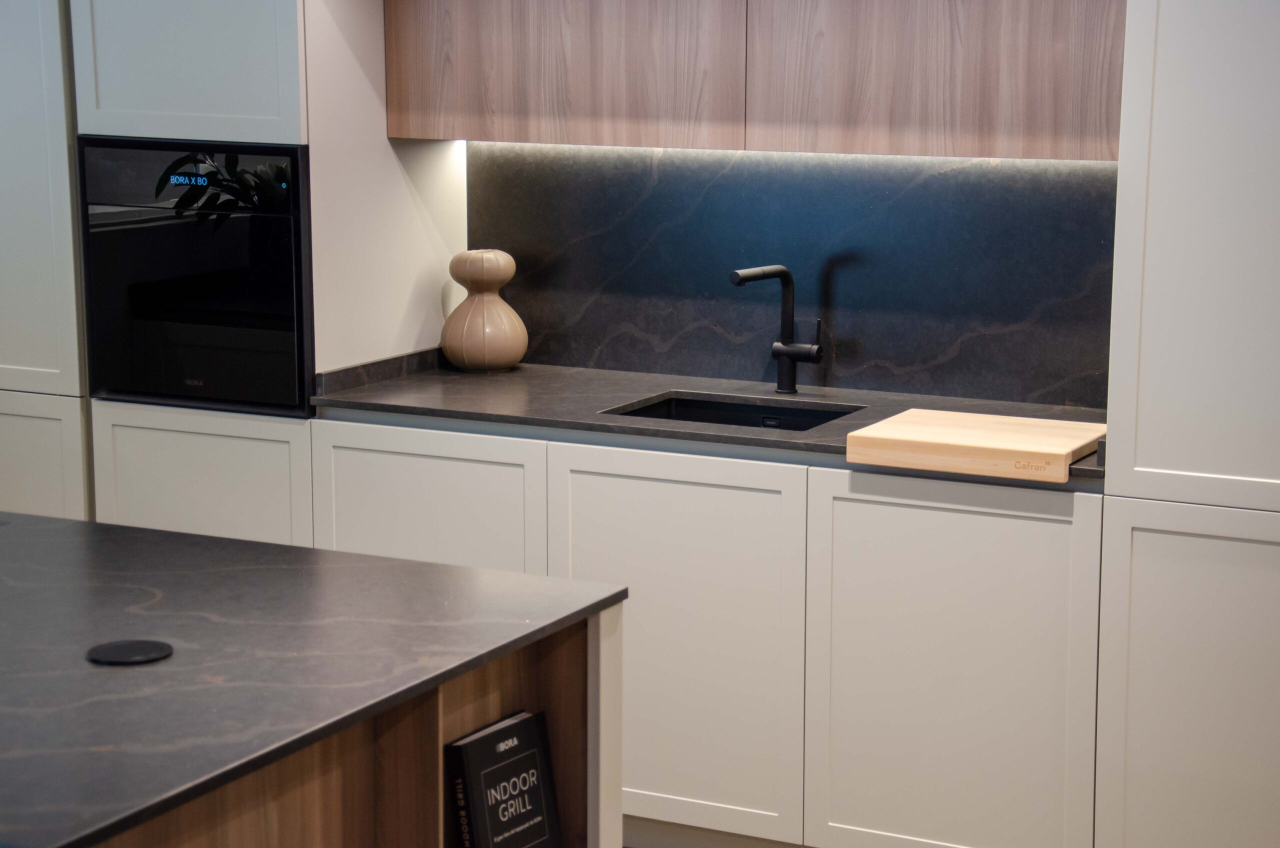 Los detalles para nosotros lo son todo y al fin y al cabo, es lo que marca la diferencia en el día a día y personalizan el espacio. Esta cocina está equipada con la tecnología más exclusiva y novedosa del mercado. Por un lado, tenemos el horno BORA X BO que es mucho más que un horno. La idea de BORA X BO es que vivas una experiencia culinaria profesional, con el mínimo esfuerzo pero obteniendo grandes resultados. Este modelo cuenta con auto limpieza, cocción al vapor, deshidratación de alimentos, extracción de vapores y una pantalla táctil que facilitará su uso haciéndolo mucho más intuitivo. Además, podrás encontrar un completo recetario que será continuamente actualizado de forma automática gracias a su conexión WIFI.