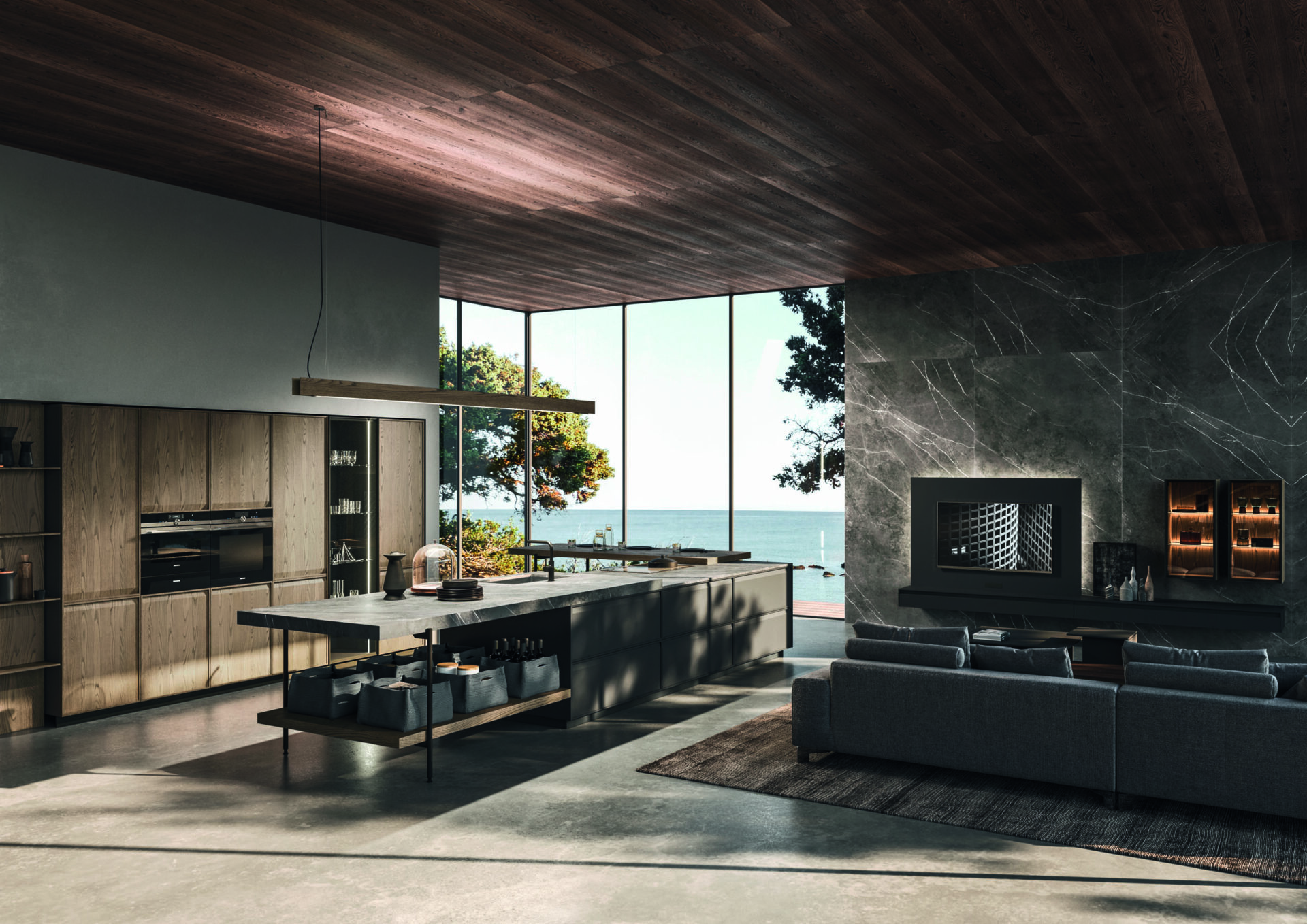 - La tendencia de los espacios abiertos ha dado lugar a que las cocinas se mimeticen con el salón incluso, usando los mismos acabados para todos los muebles de la estancia.