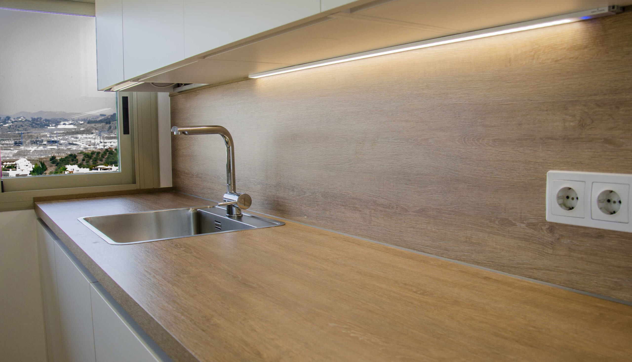 Una cocina limpia, acogedora y práctica