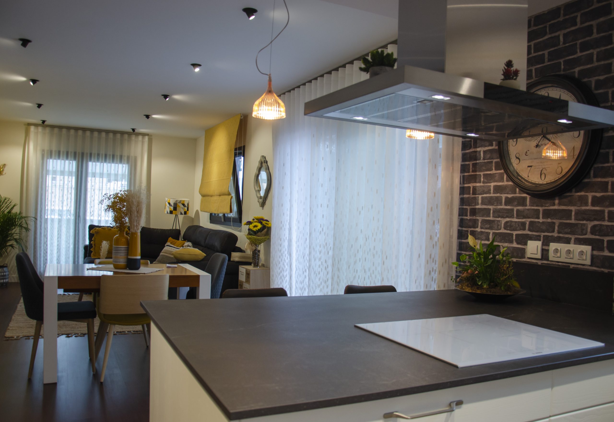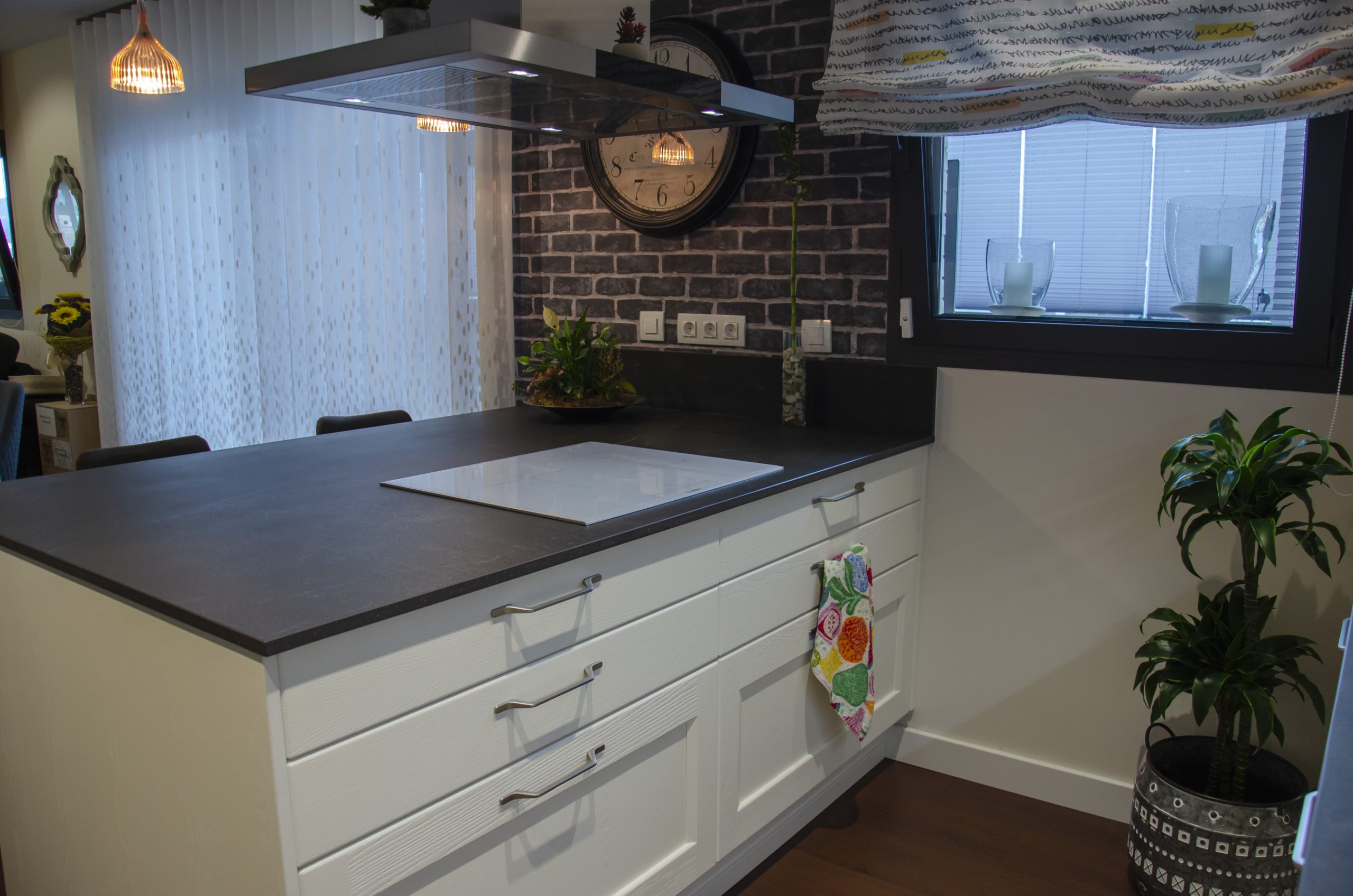 16 de septiembre de 2020Village de nuestro fabricante Arrital sin duda, tiene algo especial. Nuestra clienta supo apreciarlo desde el primer momento y aunque se planteó decantarse por otros modelos, finalmente Village le había robado el corazón y es fácil de entender. Village lleva con nosotros muchas temporadas llenando hogares de sensaciones cálidas y acogedoras. Es de las pocas cocinas rústicas que han aguantado el paso del tiempo en nuestro catálogo gracias a sus características únicas, un clásico renovado que nunca pasa de moda con puerta de fresno macizo lacado en 7 colores diferentes, para todos los gustos. La duda era, ¿cómo encajamos un modelo clásico de una cocina abierta al salón en pleno corazón de la capital? Siendo esta una tendencia a priori, muy moderna y contemporánea. Pues bien, este es un ejemplo perfecto de cómo Village es el modelo que, a pesar de sus aparentes limitaciones, puede ser mucho más versátil de lo que nos imaginamos. En primer lugar la distribución fue clave: sencilla pero efectiva, dando lugar a una cocina con gran capacidad de almacenamiento y una península practicable en ambas caras, electrodomésticos encastrados… y mucho más.