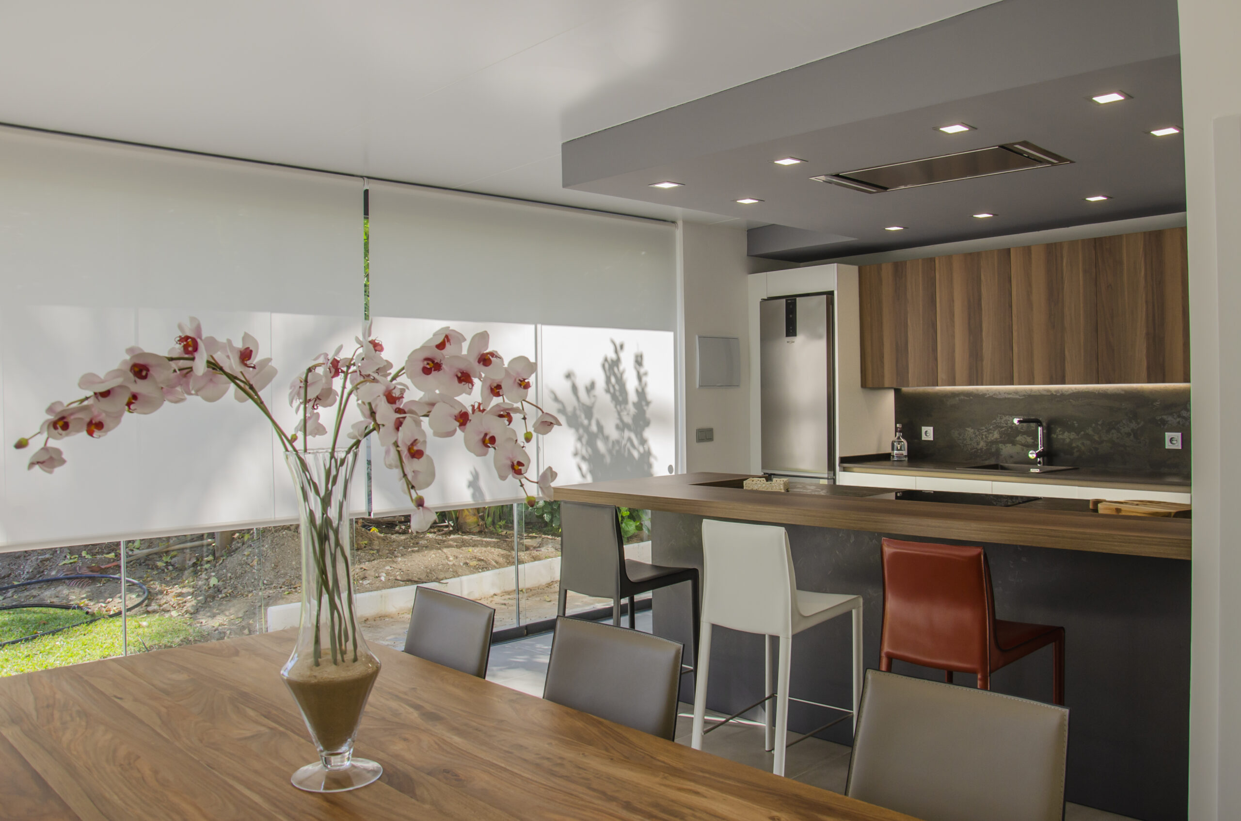30 de octubre de 2020Este nuevo proyecto es algo diferente a lo que estamos acostumbrados a ver ya que se trata de una cocina auxiliar situada en el jardín de la vivienda, tan sólo la separa una cristalera que la rodea por completo y deja pasar una gran cantidad de luz natural uniendo ambos espacios sin entorpecer la visión del exterior. Contamos con tres zonas bien diferenciadas: la zona del salón, el comedor y la cocina.